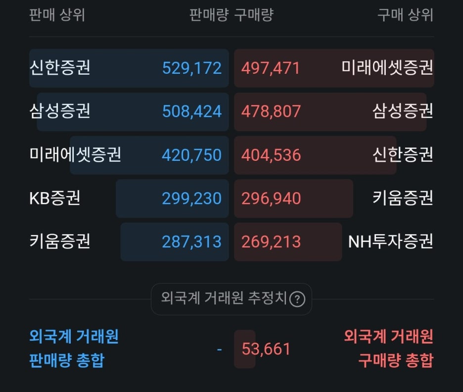 특히 미래에셋증권의 경우 매도량보다 매수량이 더 많으며, 신한증권은 매도량이 매수량보다 다소 우위에 있습니다. 이러한 미세한 차이가 당일 주가 흐름에 영향을 미치고 있는 것으로 보입니다.