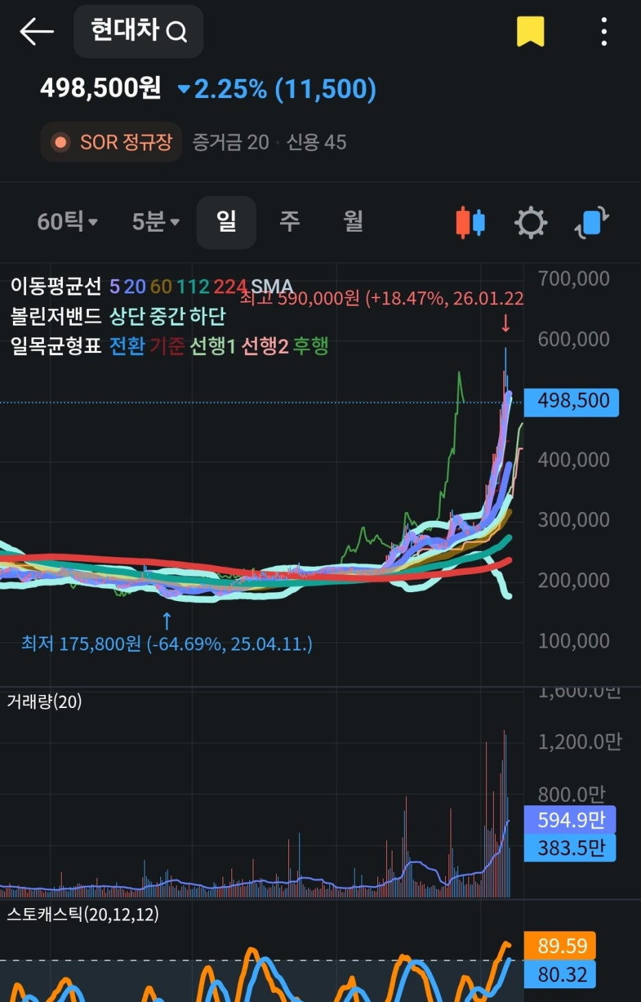 단기적으로는 외국계 매도세가 잦아드는 지점을 확인하는 것이 중요하며, 50만 원 선을 다시 탈환하며 지지선을 구축하는지 지켜볼 필요가 있습니다.