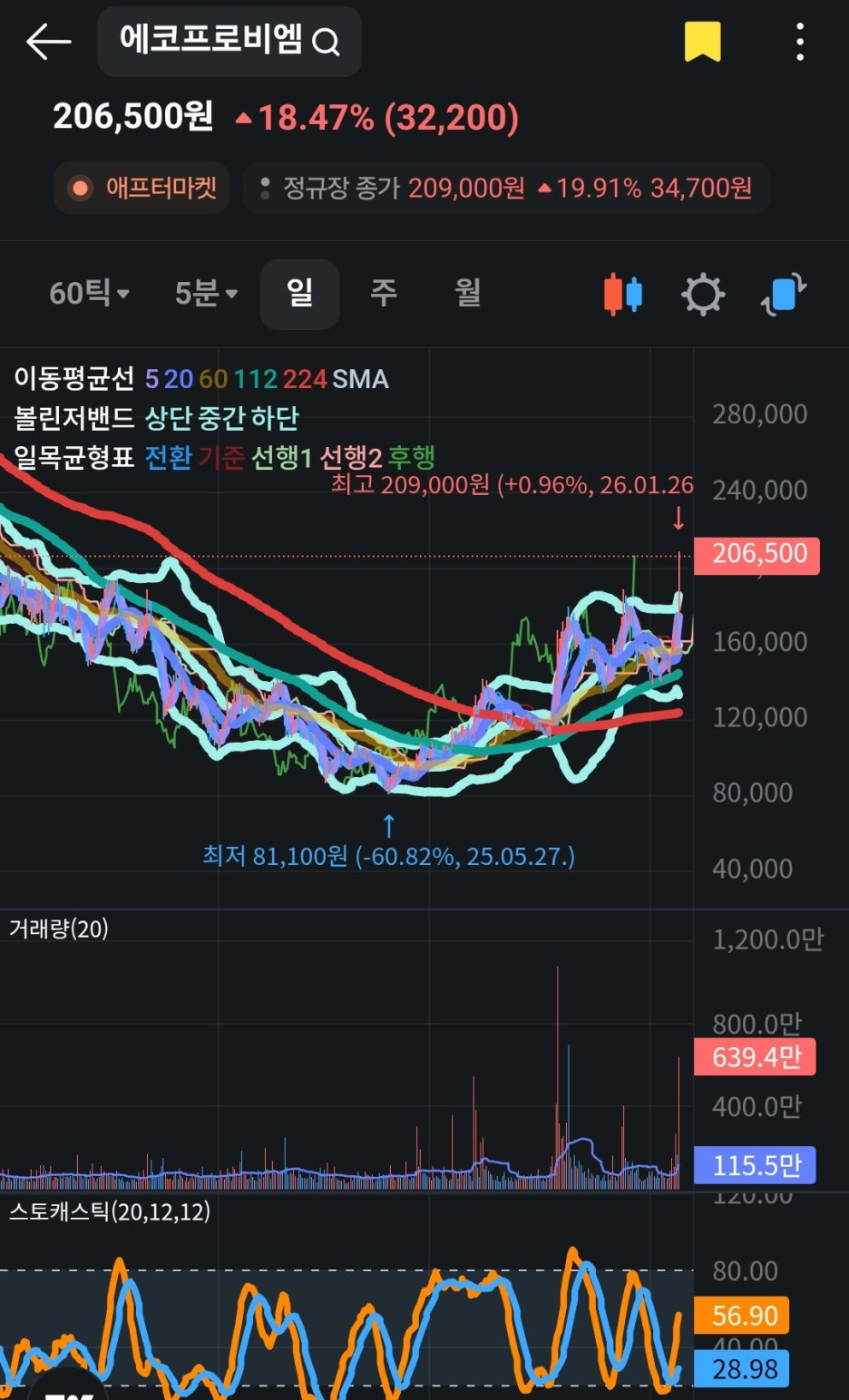 - 특이사항: 장중 정규장 종가는 209,000원(+19.91%)으로 더 높았으며, 현재 애프터마켓(장외 거래)에서도 활발한 흐름을 유지하고 있습니다.