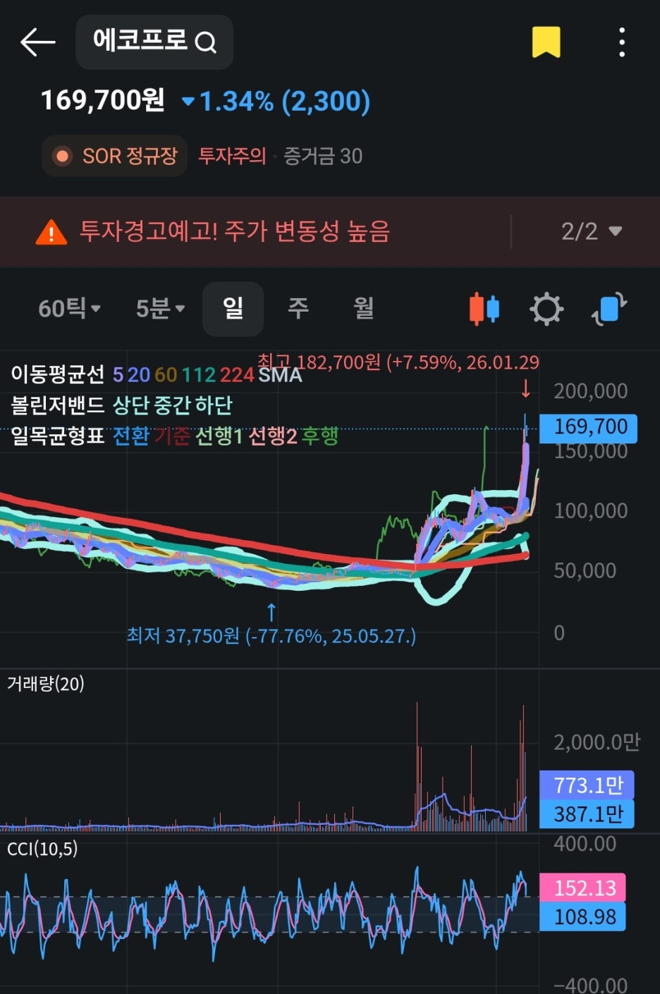 현재 에코프로는 '투자주의' 종목으로 지정되어 있으며, 외국인의 매도세가 강하게 나타나고 있습니다. 주가가 17만 원 선 아래로 내려온 상황에서 개인 투자자들의 매수세가 지지선을 형성해줄지가 관건입니다.