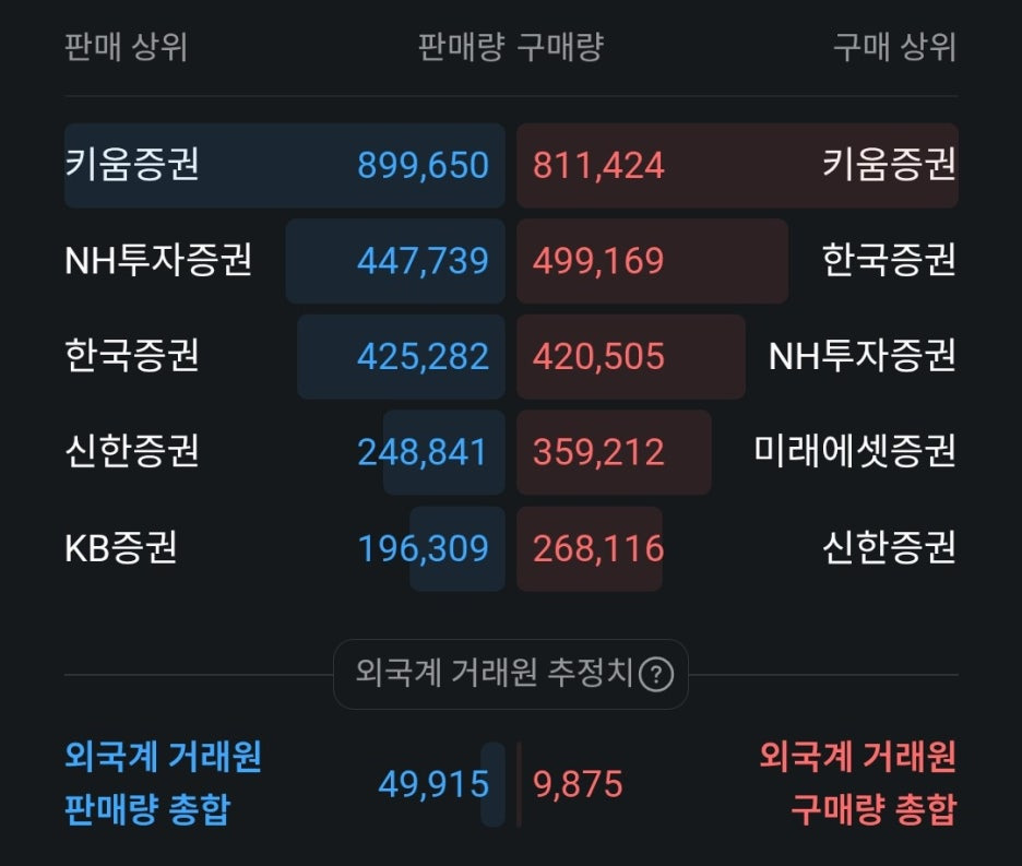 - 외국계 거래원의 강한 매도세: 하단 데이터를 보면 외국계 거래원의 추정치가 눈에 띕니다.