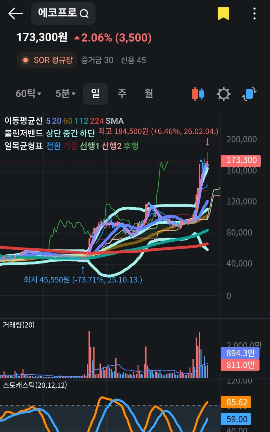 오늘(2026.02.04) 에코프로는 장중 7% 넘는 급등세를 보이며 173,300원 선에 안착했습니다.