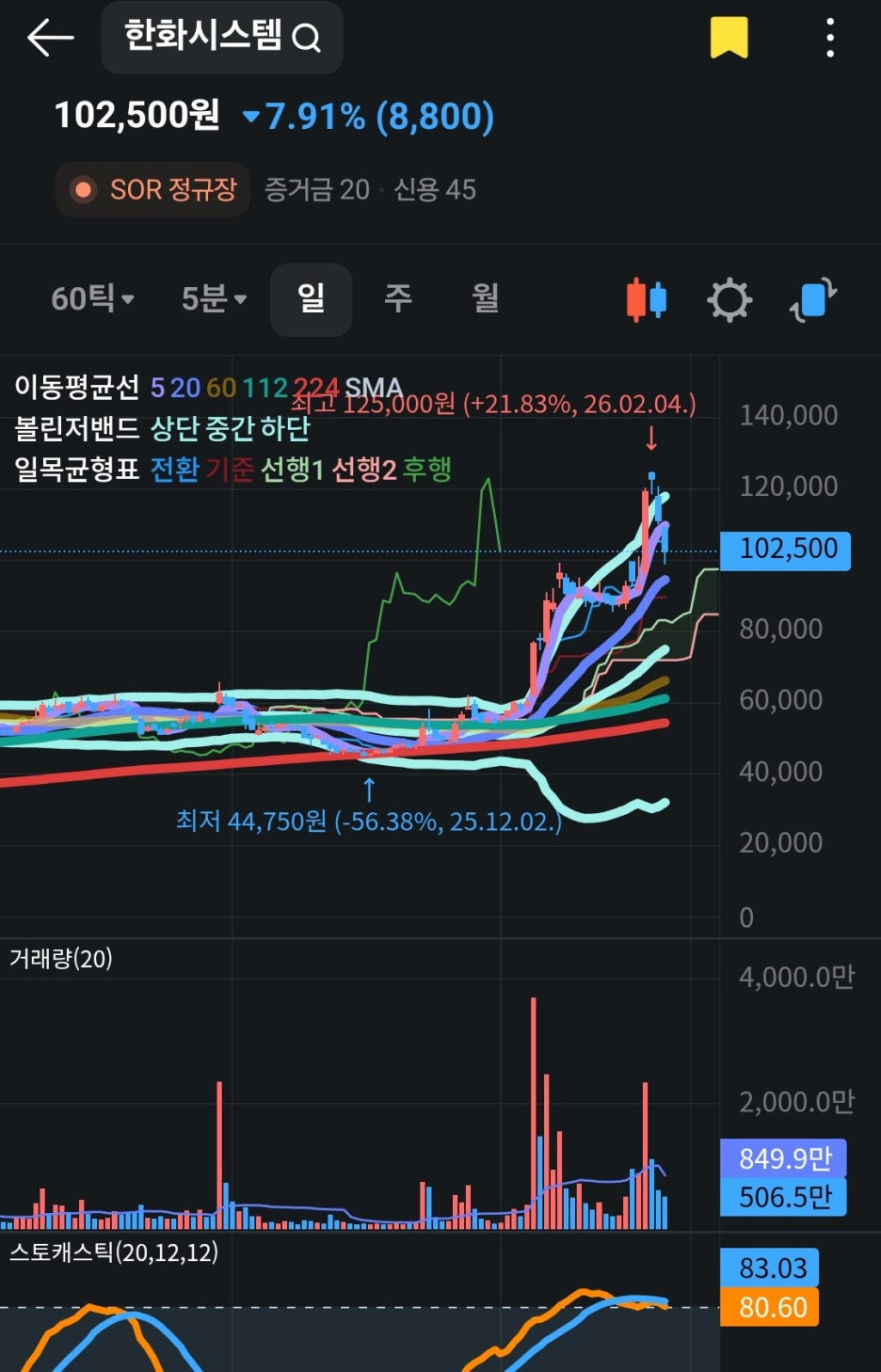 - 급등에 따른 피로감과 차익실현: 차트를 보시면 2월 4일 고점인 125,000원까지 수직 상승했습니다. 단기간에 너무 가파르게 올랐기에 기관과 외국인의 '수익 실현' 매물이 쏟아진 것으로 보입니다.