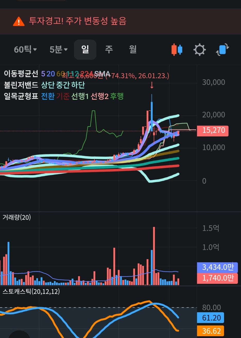 - 심리적 저항선: 15,000원 선을 돌파하며 안착하려는 시도가 보이나, 투자경고 종목 지정에 따른 단기 차익 매물 소화 과정이 동반될 수 있습니다.