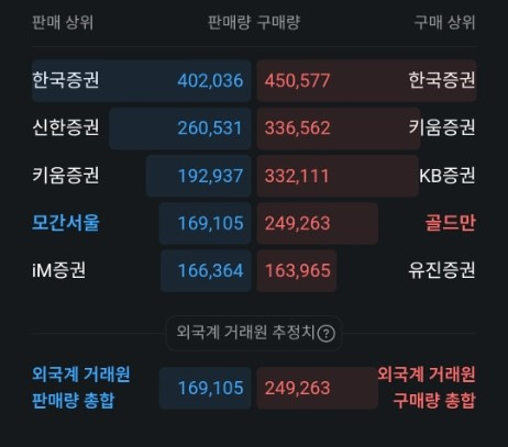 골드만삭스(외인), KB/한국(기관)의 강력한 협공 매수세 포착