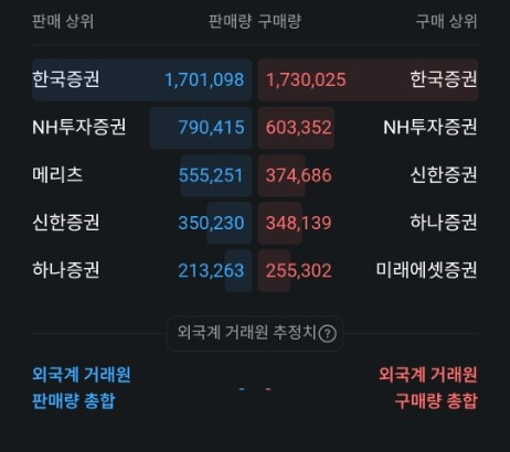 - 거래원 분석: 한국증권, NH투자증권 등 주요 창구에서 판매량이 구매량을 압도하고 있습니다. 특히 외국계 거래원의 대규모 매도세가 확인되지 않는 상황에서의 급락은 국내 기관 및 개인 투자자들의 심리 위축에 따른 동반 하락 성격이 강합니다.