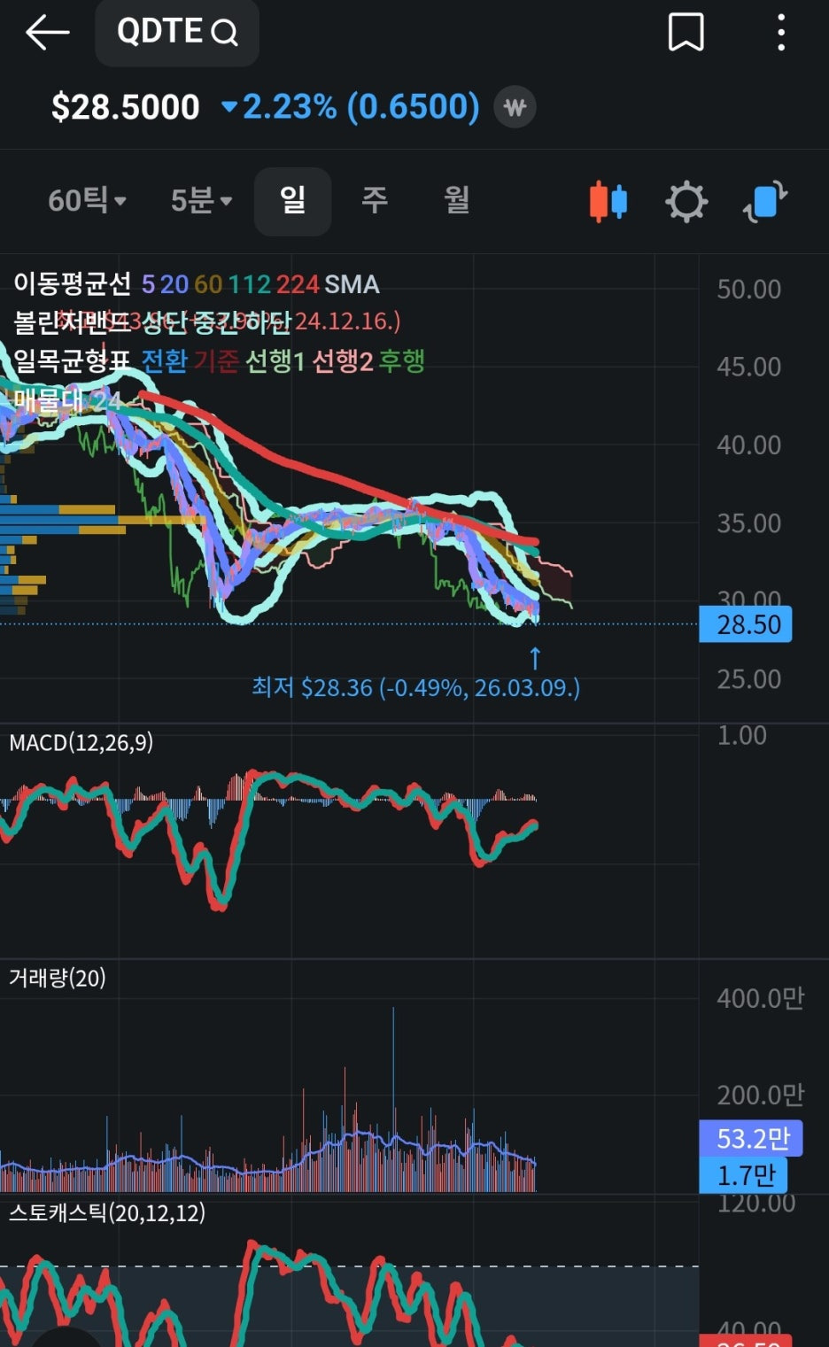 하지만 화려한 배당수익률 뒤에 가려진 주가 하락의 원인과 차트 속 위험 신호를 제대로 읽지 못하면 자칫 큰 손실로 이어질 수 있습니다. 오늘은 QDTE가 1년 넘게 하락세를 보인 이유와 함께, 현재 차트에서 포착된 매수 타이밍과 증권가 목표가까지 인생공부만의 시선으로 날카롭게 분석해 보겠습니다.