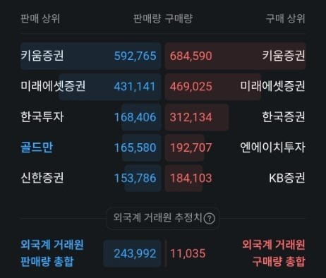 - 거래원 분석 : 외국계 창구(골드만 등)에서 매도가 이어지고 있습니다. 특히 외국계 매도 합계가 약 24만 주에 달하는 반면 매수는 미미하여, 외국인 자금 이탈이 오늘 하락의 주된 원인으로 파악됩니다.