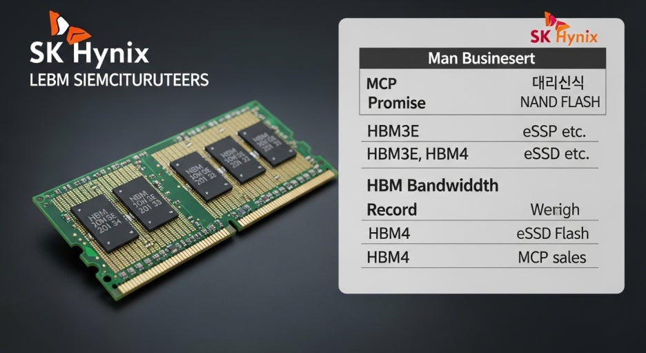- 주력 사업: DRAM(HBM3E, HBM4), NAND Flash(eSSD 등), MCP 제조 및 판매.