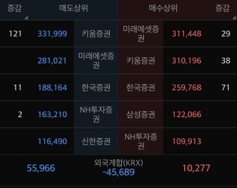 미래에셋, 키움, 한국증권 등 국내 대형 창구를 통해 매수세 유입. 외국계 합산 순매수 확인