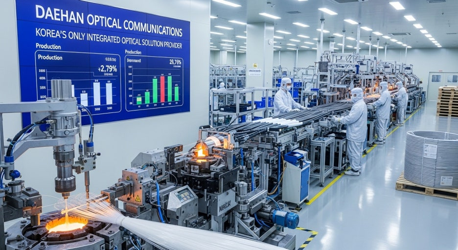 대한광통신은 국내에서 유일하게 광섬유부터 광케이블까지 전 과정을 일관 생산하는 기업입니다. 최근 AI 데이터센터 확충으로 인한 광케이블 수요 폭증의 직접적인 수혜주로 분류됩니다.