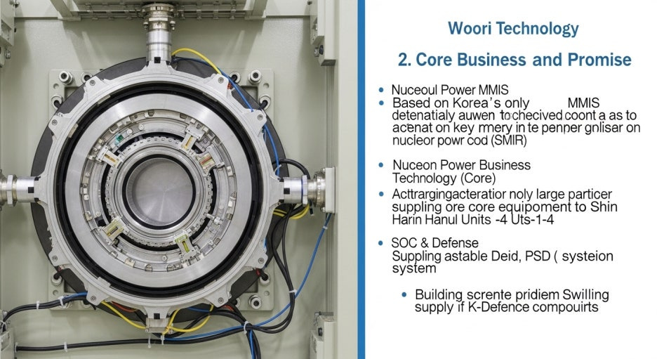 우리기술은 원자력 발전소의 두뇌에 해당하는 MMIS(계측제어시스템) 국산화에 성공한 국내 유일의 기업입니다. 과거 해외 기술에 의존하던 핵심 설비를 자체 기술로 대체하며 한국형 원전(APR1400)의 핵심 파트너로 자리 잡았습니다.