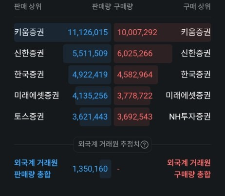 - 키움증권: 매수와 매도 모두 1위로, 개인 투자자들의 활발한 단타 매매와 손바뀜이 일어나고 있음을 보여줍니다.