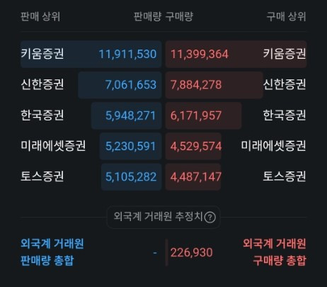 - 거래원: 키움증권이 매수/매도 모두 압도적 1위로 개인 투자자들의 높은 참여도를 보여주며, 신한/한국/미래/토스 등 주요 창구를 통해 거래가 활발합니다. 외국계 창구에서 약 22만 주 가량의 순매수세(추정)가 유입된 점은 긍정적입니다.
