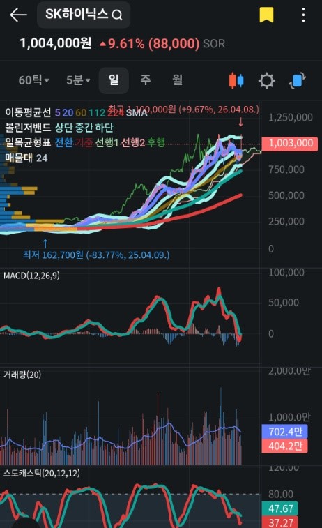 현재 SK하이닉스는 단순한 테마주가 아닌 실적과 미래 가치가 결합된 실적 장세의 중심에 있습니다. 단기적으로는 100만 원 돌파에 따른 차익 실현 매물이 나올 수 있으나, HBM 시장의 주도권과 미국 상장 모멘텀을 고려할 때 중장기적 우상향은 여전히 유효해 보입니다.